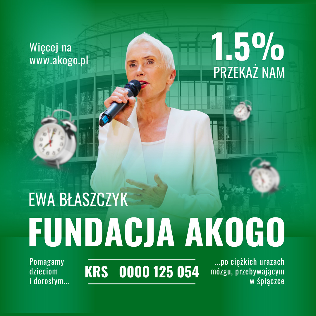 Przekażcie 1,5% swojego podatku na rzecz Fundacji Ewy Błaszczyk "Akogo?".