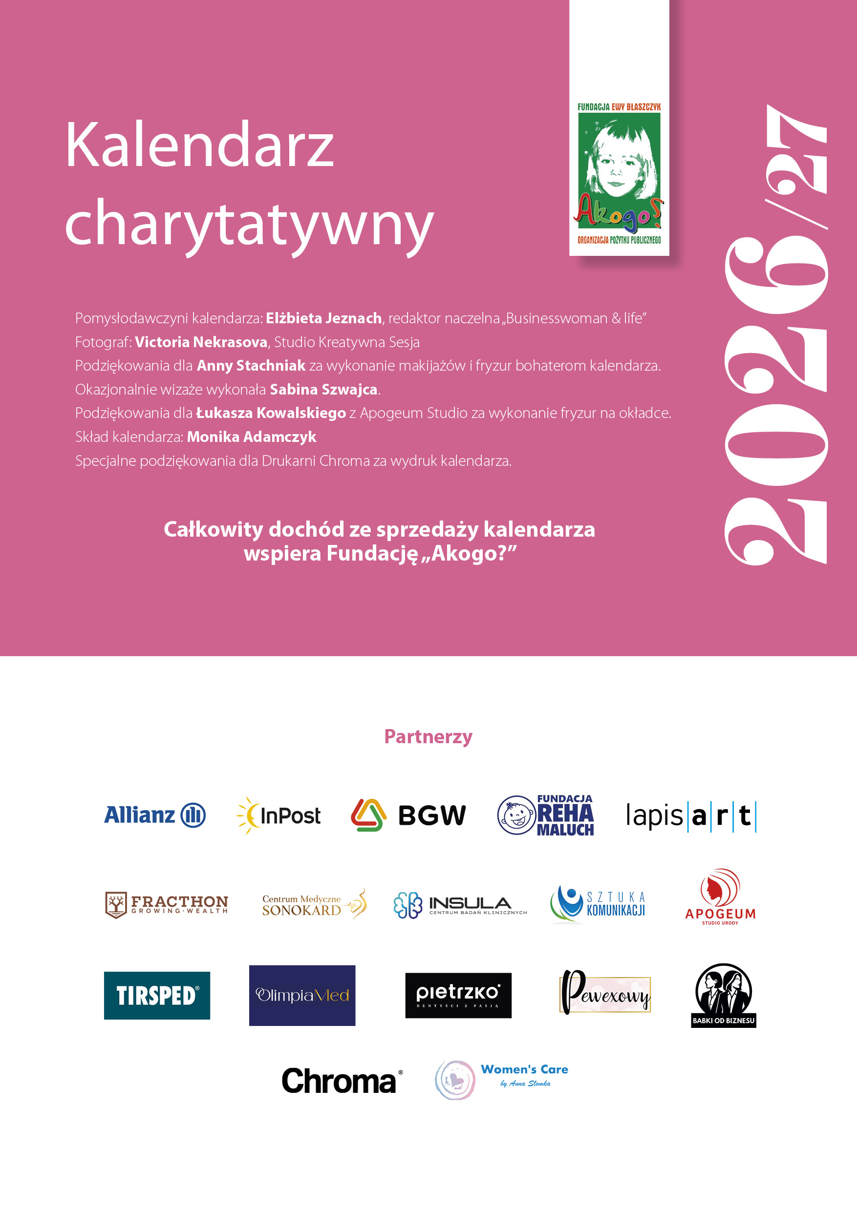 Redakcja magazynu „Businesswoman & life”, już po raz 14 wspiera nas charytatywnym kalendarzem, tym razem na rok 2026.